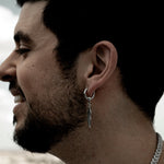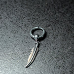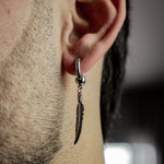 עגיל קלאסי עם תוספת של נוצה ארוכה שמורכבת מסיביות קטנות ומעוגלות שמחוברות למרכז העגיל.