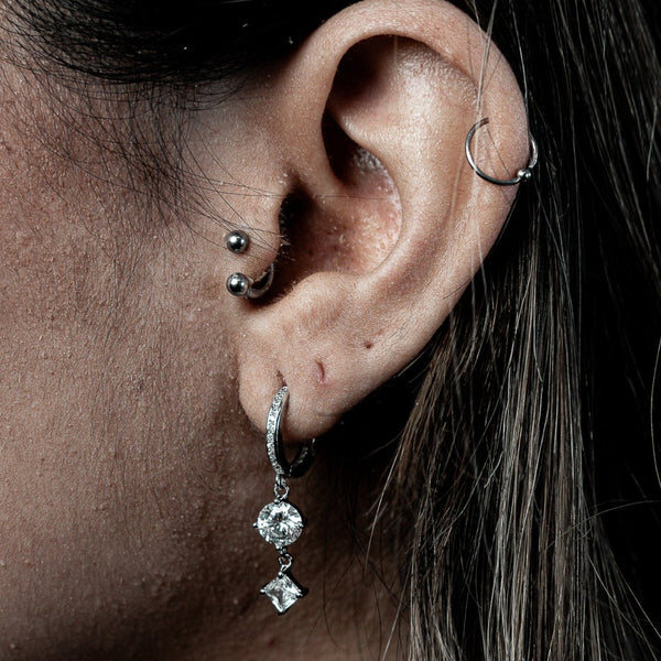 מתחת לאבן המרכזית, מחוברת אבן זירקון נוספת בצורת ריבוע, המוסיפה לעגיל מראה מודרני ומרהיב.